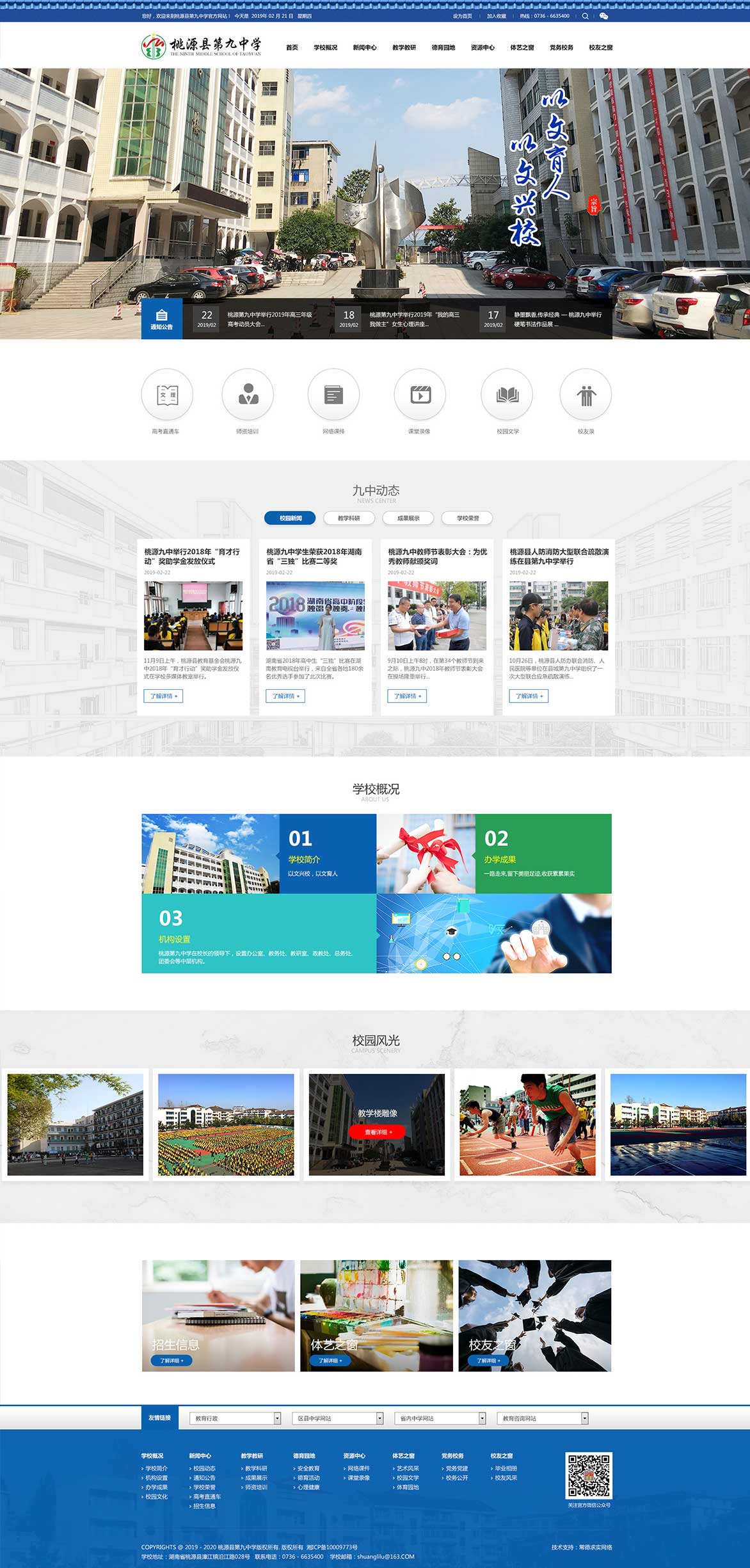桃源縣第九中學(xué)坐落在桃源縣城漳江鎮(zhèn)沅水之濱,創(chuàng)建于1982年,前身為桃源縣城關(guān)中學(xué),1999年晉升為市級(jí)示范性中學(xué)。現(xiàn)有教學(xué)班67個(gè),學(xué)生3940人,教職工324人。 學(xué)校校園面積70余畝,教學(xué)樓、電教樓、學(xué)生公寓樓、學(xué)生食堂等教學(xué)生活設(shè)施齊全,儀器室、實(shí)驗(yàn)室、圖書室均達(dá)國(guó)家二類標(biāo)準(zhǔn)。近年來,投入1000多萬新建了高標(biāo)準(zhǔn)運(yùn)動(dòng)場(chǎng),重修了校門和高三教學(xué)樓,辦學(xué)條件全面改善,校園環(huán)境更加宜人。